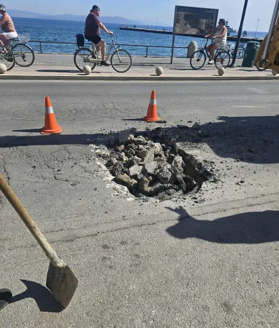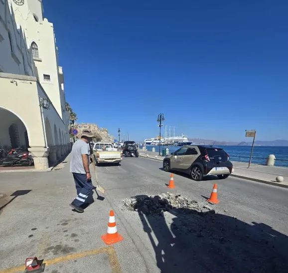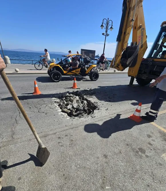 Παρέμβαση πραγματοποιούν συνεργεία του Δήμου Κω στο δρόμο μπροστά από το Αστυνομικό Τμήμα Κω, έπειτα από καθίζηση που εντοπίστηκε σε συγκεκριμένο σημείο του οδοστρώματος.