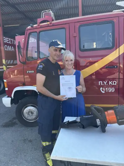 Με την παρούσα επιστολή, ο Διοικητής και το προσωπικό της Πυροσβεστικής Υπηρεσίας Κω, θα ήθελε να ευχαριστήσει θερμά την κ. Marion Jarvis για την ευγενική της προσφορά διασωστικού εξοπλισμού, για την κάλυψη των αναγκών της Υπηρεσίας μας.