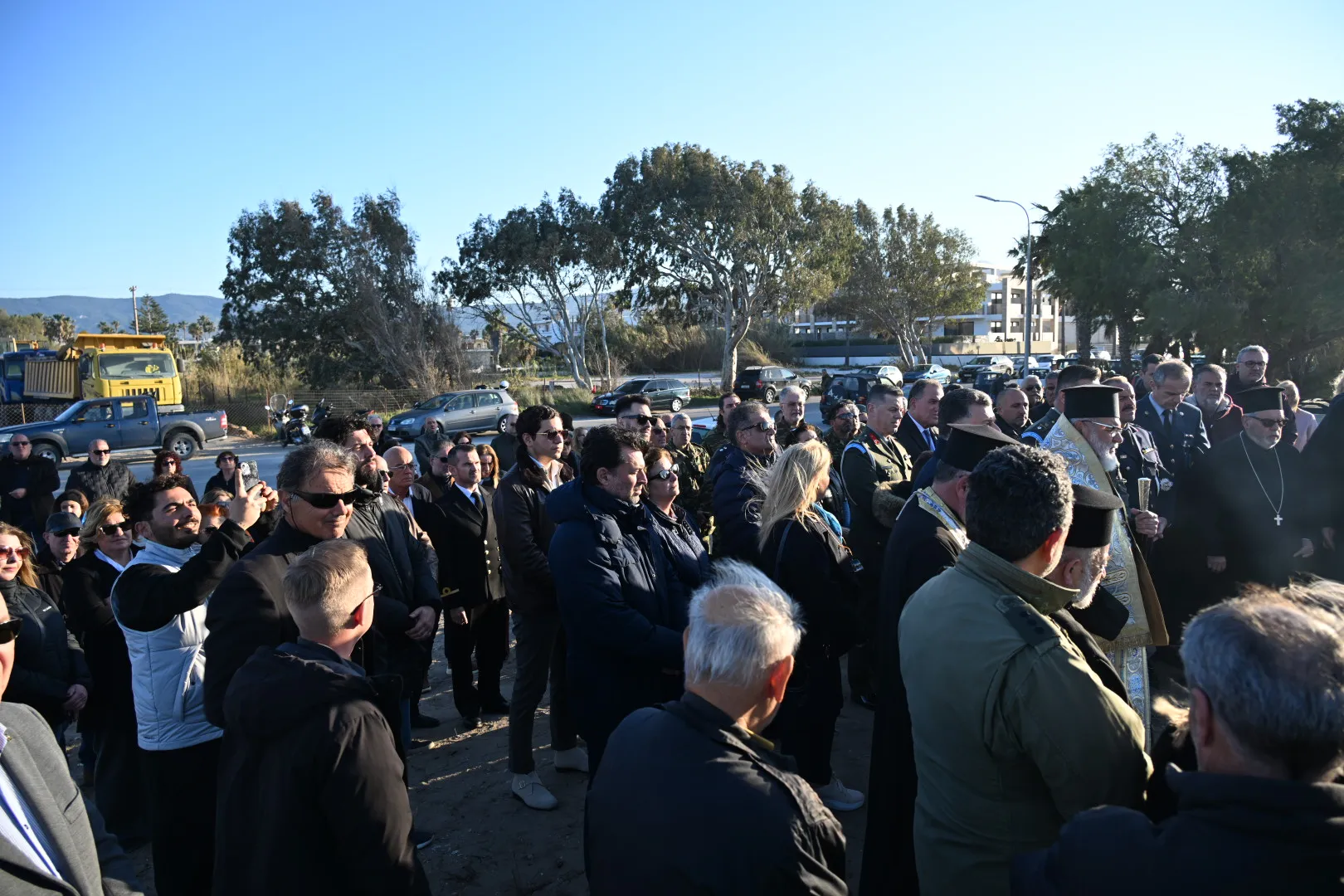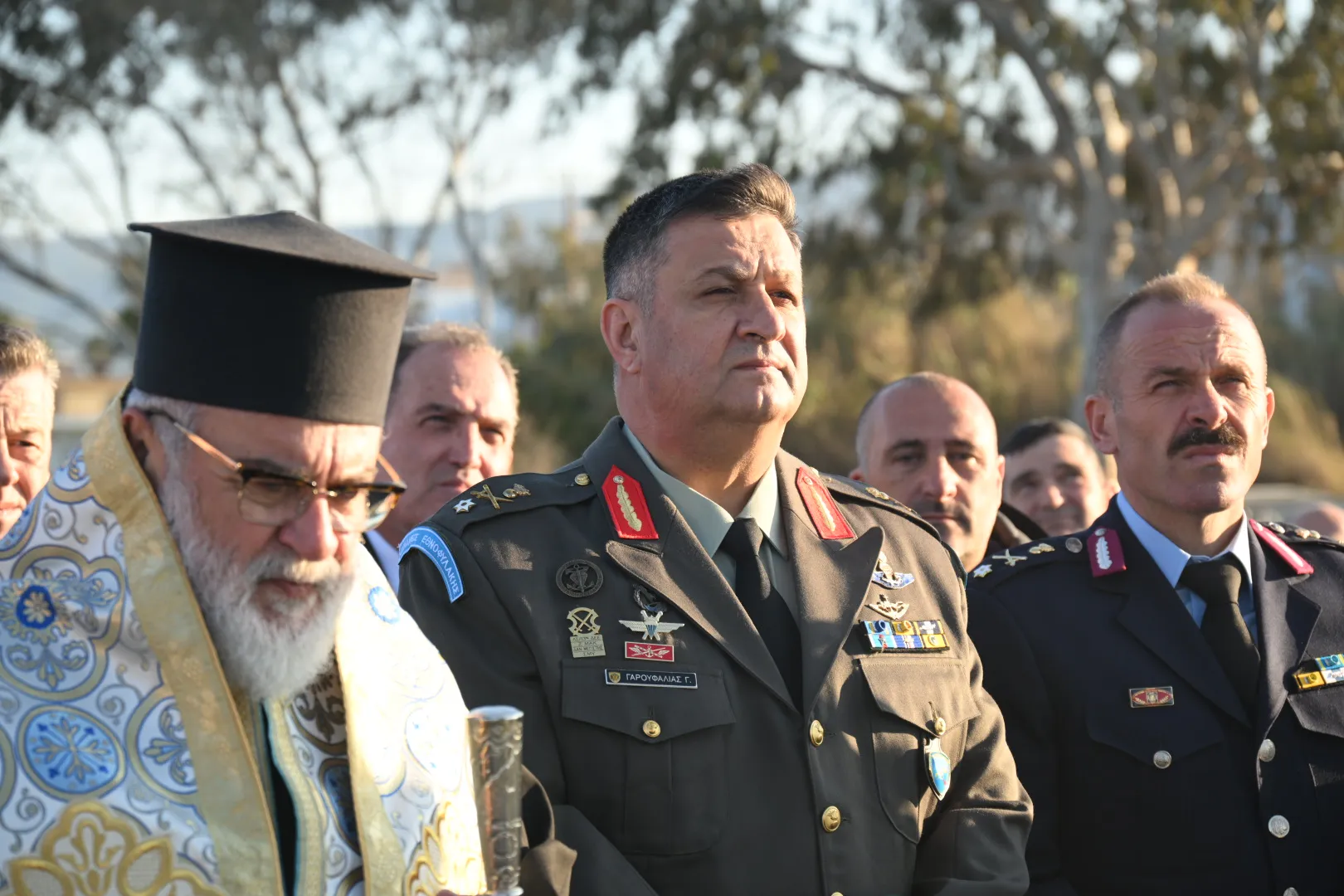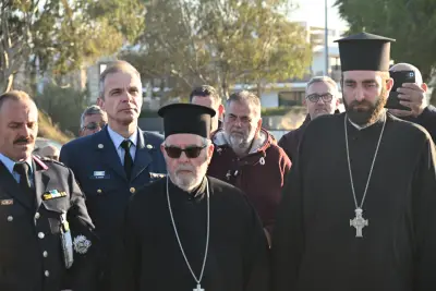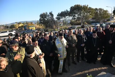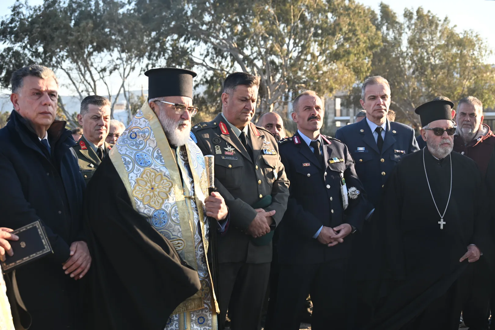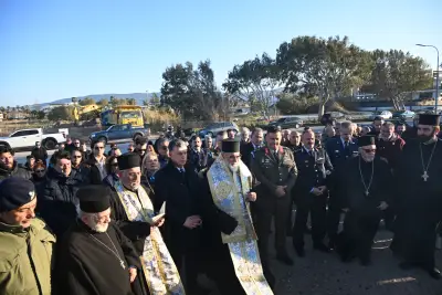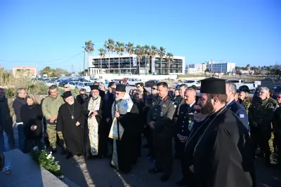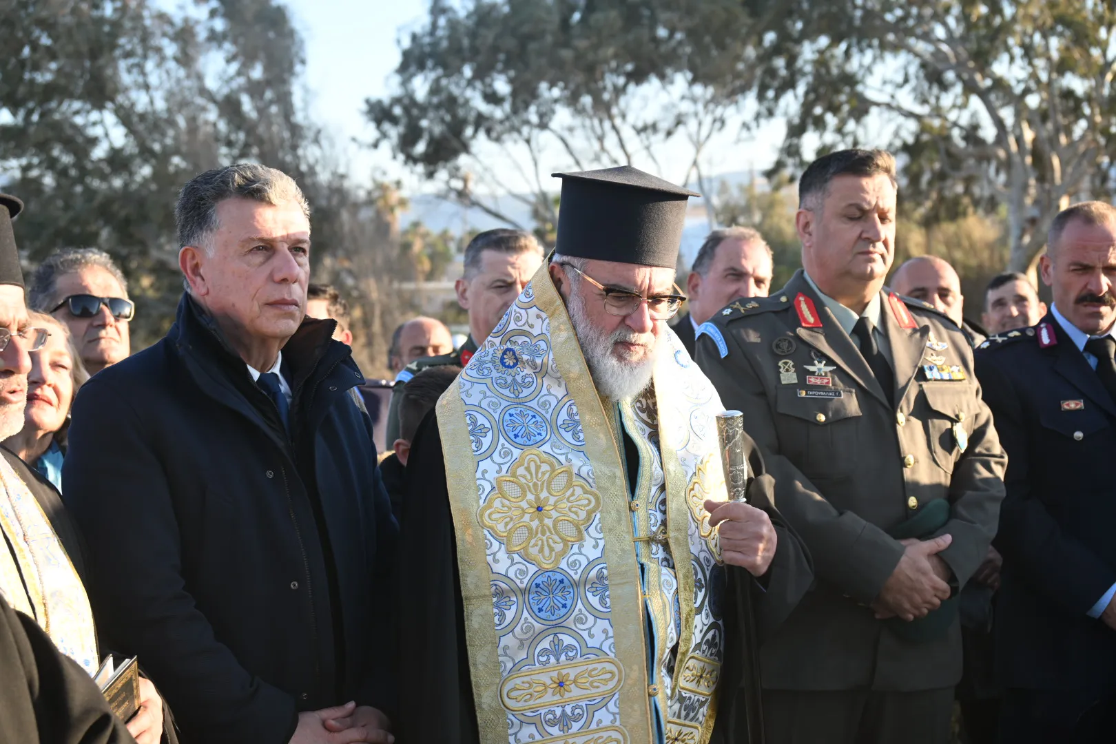 Μετά το πέρας της τελετής, ο Σεβασμιώτατος μίλησε για τους τρεις Ήρωες οι οποίοι έδωσαν τη ζωή τους για την πατρίδα, ενώ ευχαρίστησε όλους όσοι συνέβαλαν στη δημιουργία του ψηφιδωτού μνημείου, επισημαίνοντας ότι ο κ. Δαυίδ Χατζηδαυίδ, με τη στήριξη της συζύγου του Αντωνίας Σκαλέρη και των συνεργατών του, ανέλαβε την κατασκευή του, ενώ προχώρησε και στην τοποθέτησή του.