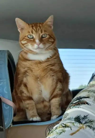 Η γάτα είναι περίπου 7,5 ετών, ζυγίζει 6 με 7 κιλά, και της λείπουν αρκετά δόντια.