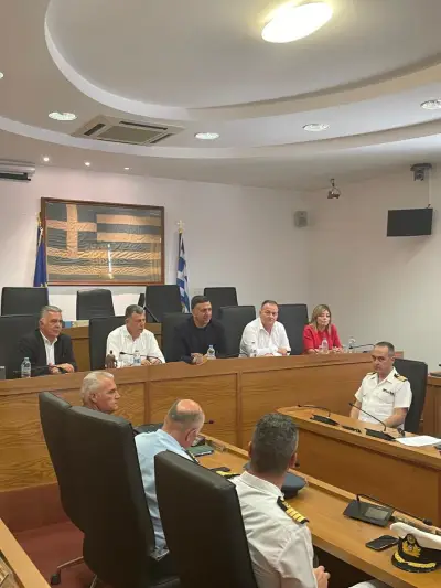 Ακολούθησε σύσκεψη στο Δημαρχείο Κω, όπου, παρουσία του Βουλευτή Δωδεκανήσου Ιωάννη Παππά, της Επάρχου Κω, Κωνσταντίνας Σβύνου, του Δημάρχου Κω, Θεοδόση Νικηταρά, του Διοικητή 80 ΑΔΤΕ, Ταξιάρχου Δημητρίου Κουλέτση και του Αστυνομικού Διευθυντή Β Δωδεκανήσου, Υποστρατήγου ΕΛ.ΑΣ. Ηλία Βαζούρα, συζητήθηκαν θέματα και ζητήματα που αφορούν στην τοπική κοινωνία, στις ανάγκες και στις υποδομές του νησιού.
