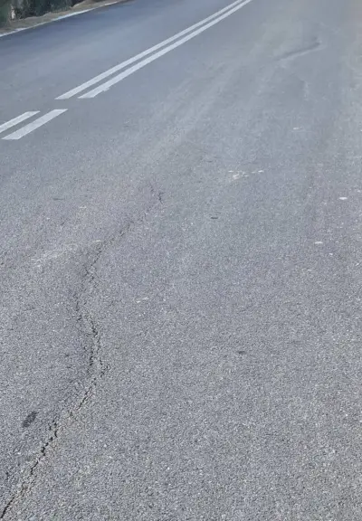 Τέσσερις μήνες μετά ο δρόμος κατέρρευσε , υπέστη καθίζηση. Αποδεικνύεται από τις φωτογραφίες.