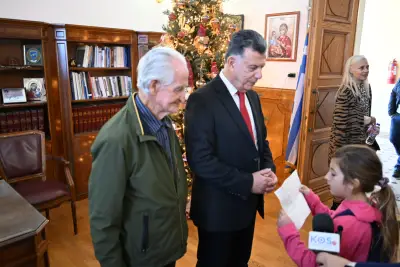 Το πρωί της Τετάρτης, 24 Δεκεμβρίου 2025, το Δημαρχείο της Κως γέμισε χαμόγελα, ευχές και χριστουγεννιάτικες μελωδίες. Παιδιά, αιρετοί νυν και πρώην, εκπρόσωποι συλλόγων, εργαζόμενοι του Δήμου Κω, καθώς και πολίτες, επισκέφθηκαν το Δημαρχείο για να ανταλλάξουν ευχές με τον Δήμαρχο και τα στελέχη της Δημοτικής Αρχής.