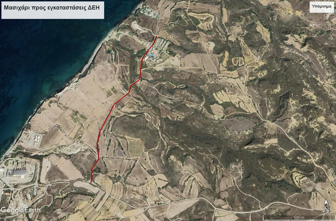 1) Τμήμα δρόμου από Μαστιχάρι προς εγκαταστάσεις ΔΕΗ (μήκος επέμβασης 1.500m).