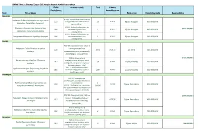 Επισυνάπτονται οι πίνακες των έργων σε Κυκλάδες και Δωδεκάνησα