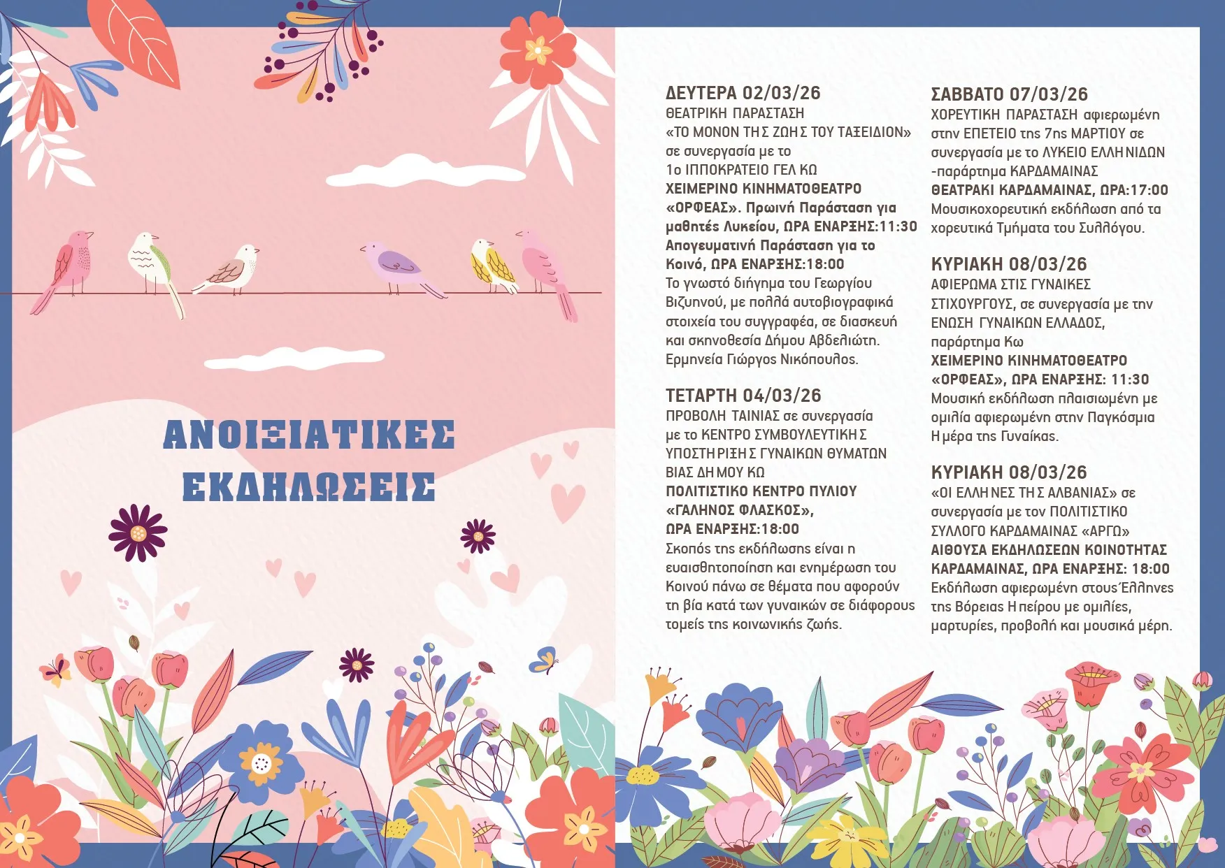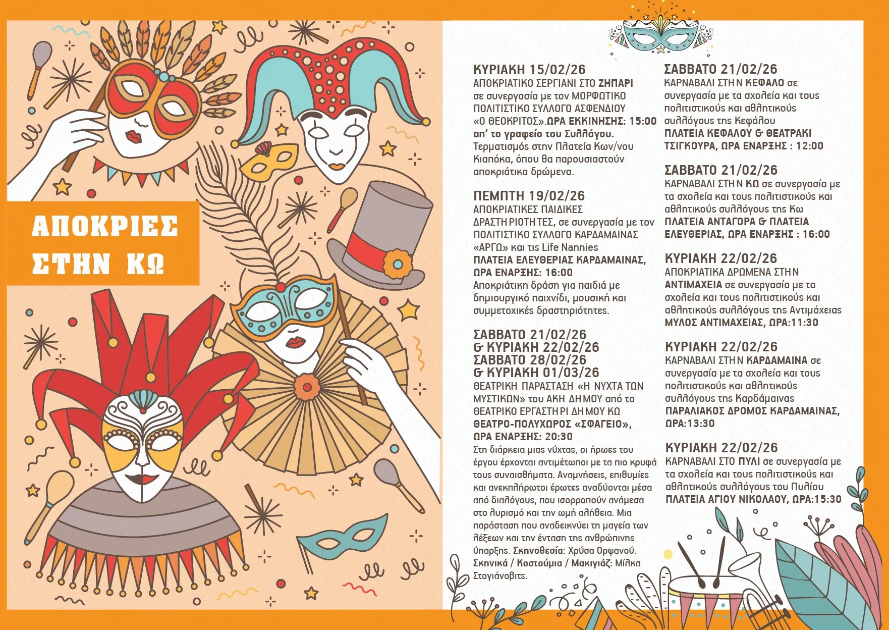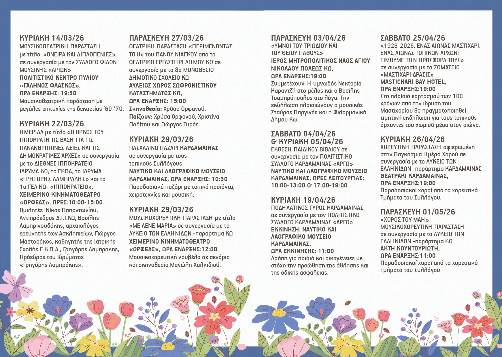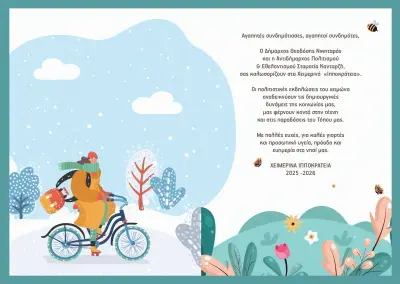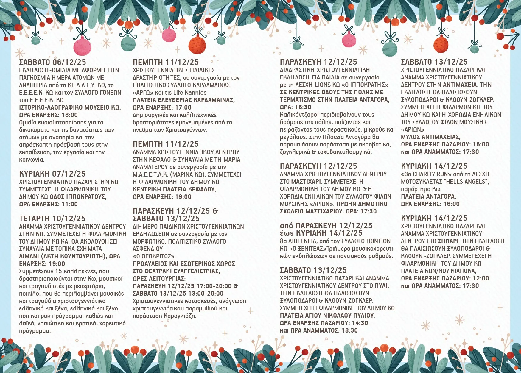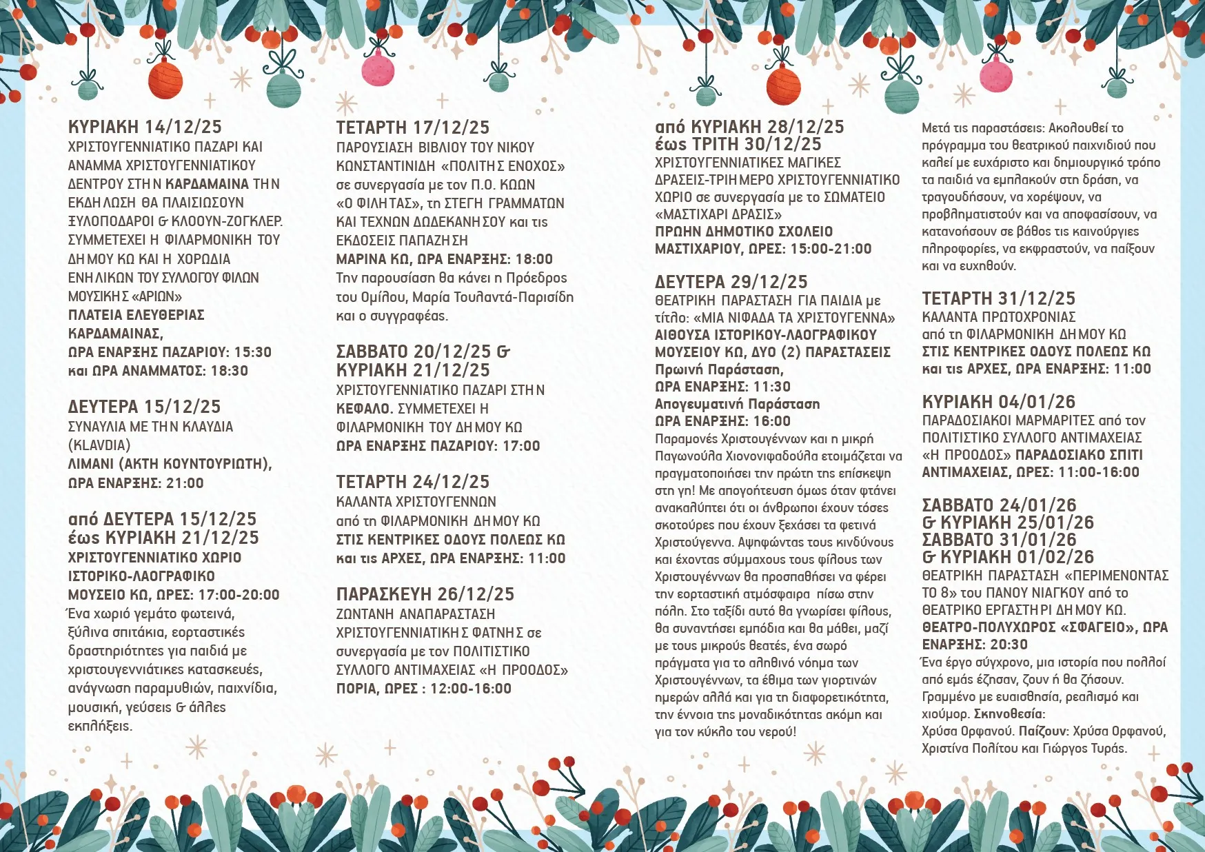 Αφορά το διάστημα από αρχές Δεκεμβρίου 2025 έως τα τέλη Μαΐου 2026 και απαρτίζεται από 60 εκδηλώσεις. Τα καθιερωμένα χριστουγεννιάτικα παζάρια και τα ανάμματα των δέντρων, συναυλίες, θεατρικές παραστάσεις για μικρούς και μεγάλους, εκθέσεις εικαστικών, μουσικοχορευτικές παραστάσεις, κινηματογραφικές προβολές, παρουσιάσεις βιβλίων και ομιλίες.