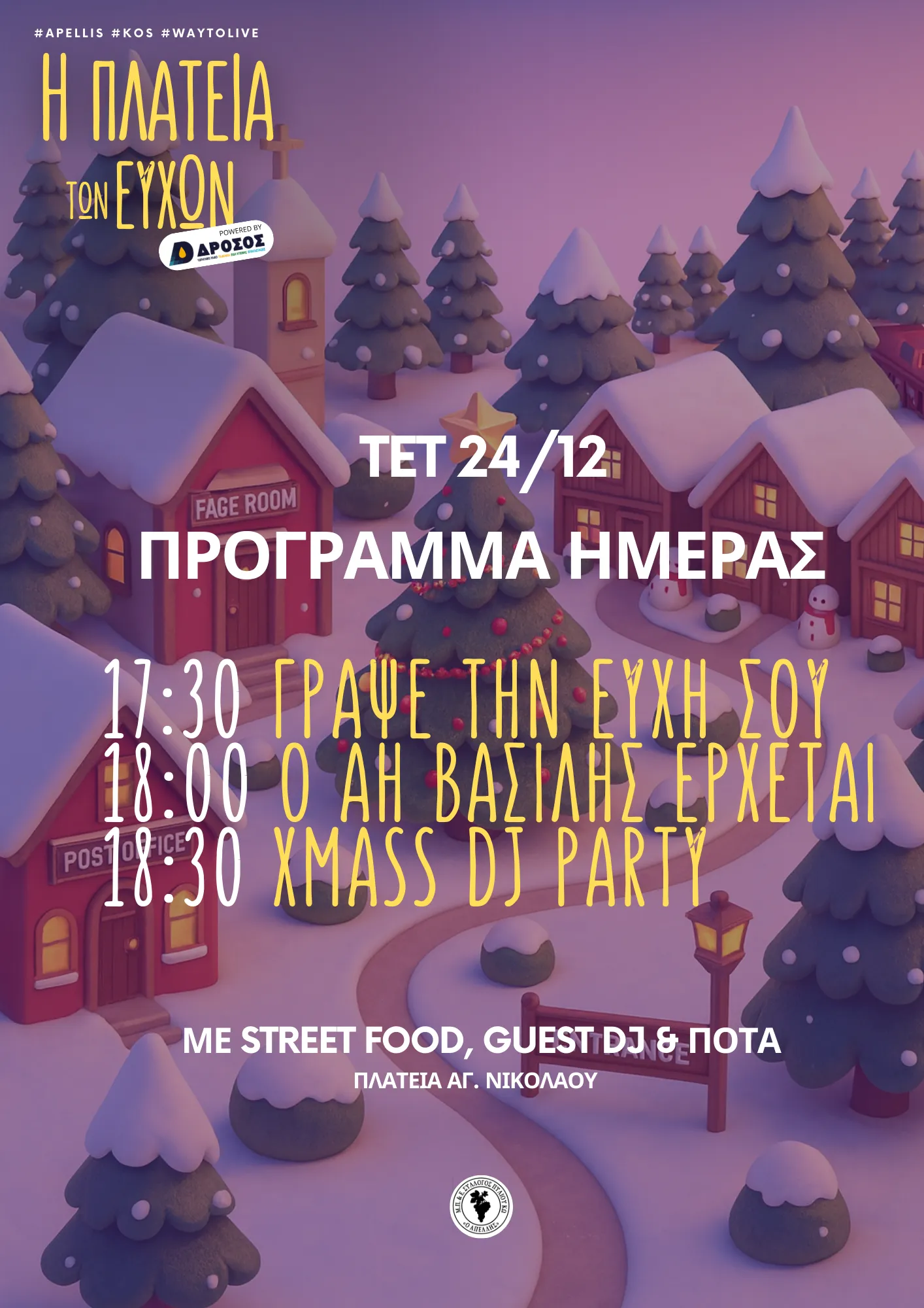 Το πρόγραμμα για Τετάρτη 24/12 (παραμονή Χριστουγέννων) θα έχει Αη Βασίλη και πολύ μουσική. Πιο αναλυτικά